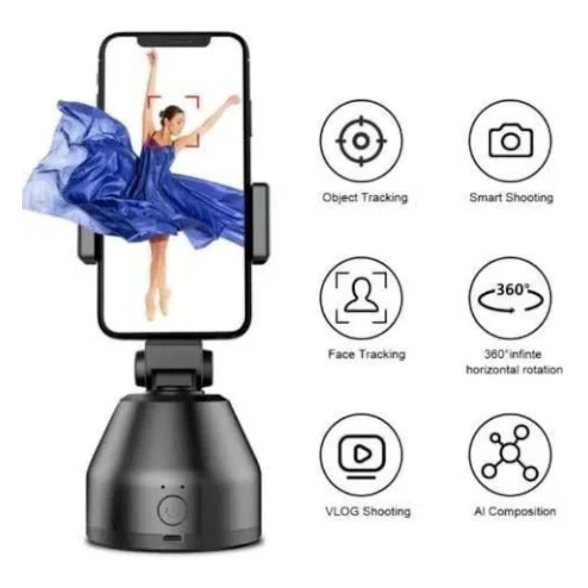 It has simple interface comparable to a native camera, automatically connected, no registration required, and no complicated tutorials to get started.Selfie Stick Smart Capture Portable Auto Tracking, Support Phone Tracking Camera Automatic Face 360 Rotation