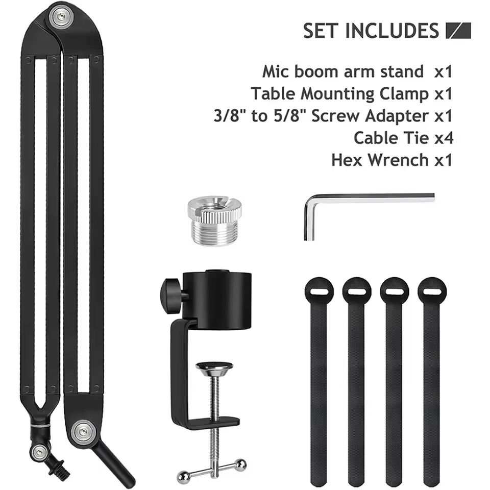 Adjustable Studio Microphone Boom Arm – Heavy-Duty Desk Mount Stand