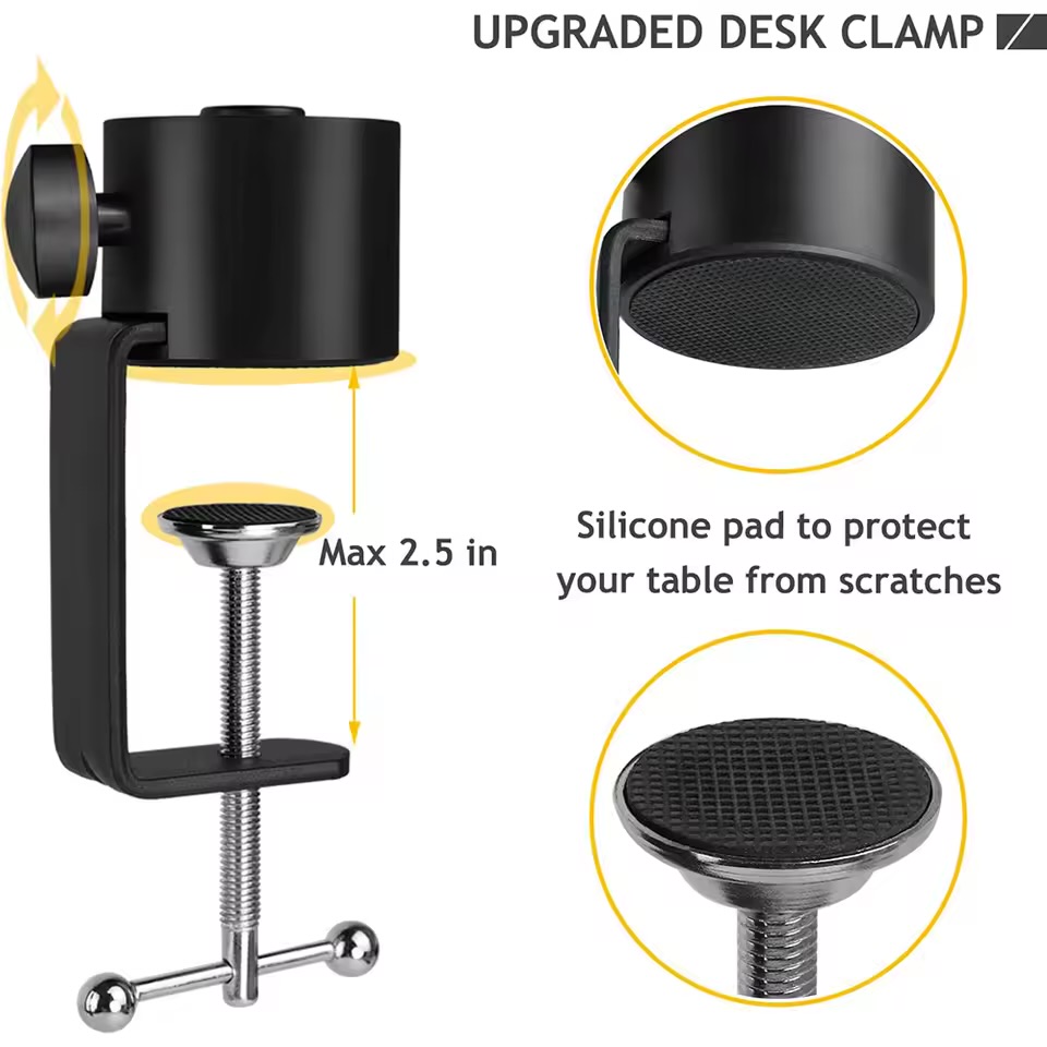 - Secure C-Clamp Mount: Sturdy desk clamp holds firmly without wobble, ideal for tables up to 2 inches thick.