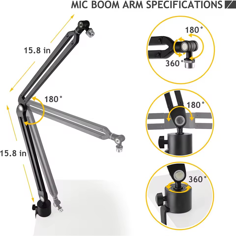 - Flexible 360° Rotation: Smooth, silent swivel lets you position your mic exactly where you need it.