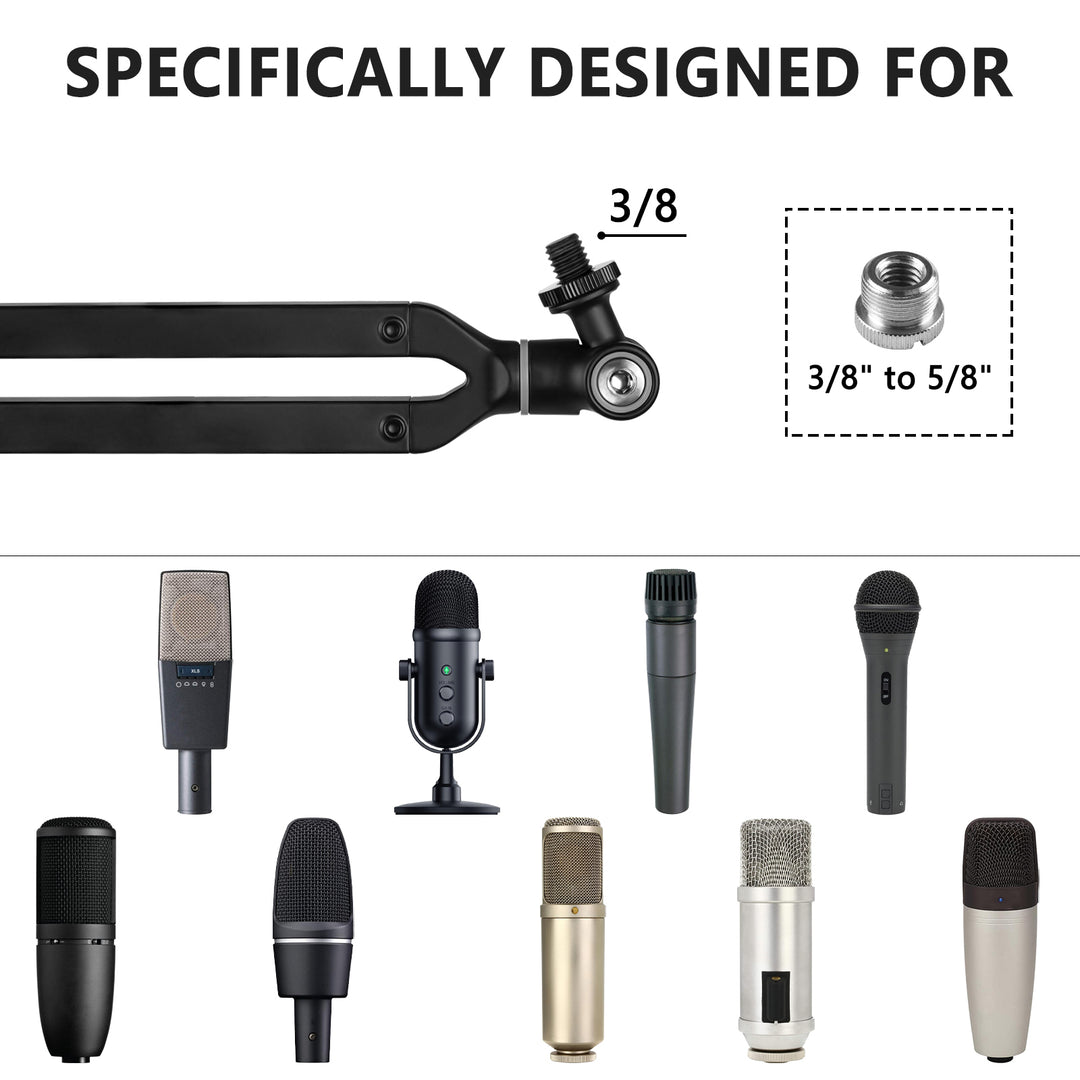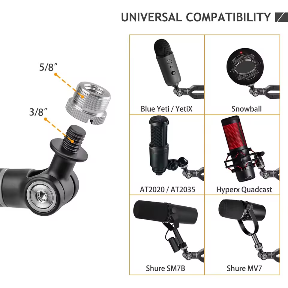 - Universal Compatibility: Fits 3/8″ and 5/8″ mic threads — compatible with popular brands like FIFINE, Maono, Blue, and Shure.