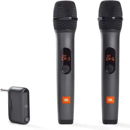 JBL wireless mics on a speaker with a mic input, but for the best experience, add-on to any of the JBL PartyBox speakers.