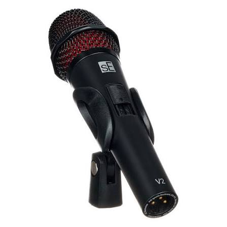 The sE Electronics V2 Switch is a multi-purpose, handheld dynamic microphone with a built-in on/off switch. It is suitable for vocals, speech, and a variety of instruments for live stage and studio applications.